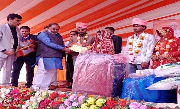 शनिवार को राजकीय पॉलिटेक्निक कॉलेज ग्राउंड में मुख्यमंत्री सामूहिक विवाह समारोह का आयोजन हुआ जहां 227 जोड़ों का विवाह हुआ. कार्यक्रम के मुख्य अतिथि प्रदेश के परिवहन मंत्री दयाशंकर सिंह रहे।