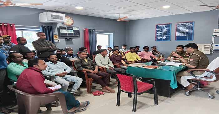 बेल्थरारोड,बलिया. उभांव थाना कार्यालय में शुक्रवार को आगामी त्योहारों को सकुशल एवं शांतिपूर्ण ढंग से संपन्न कराने के उद्देश्य से क्षेत्र के सभी डीजे संचालकों की एक बैठक आयोजित की गई। बैठक की अध्यक्षता थाना प्रभारी निरीक्षक संजय शुक्ला ने की। त्योहारों के दौरान डीजे वाहनों से जुड़े अतीत के हादसों को देखते हुए यह बैठक काफी महत्वपूर्ण रही.