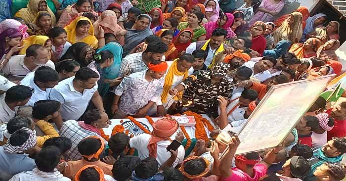 रसड़ा,बलिया. अठिलापुर निवासी सीमा सुरक्षा बल के जवान अखिलेश कुमार सिंह का पार्थिव शरीर रसड़ा पहुंचने पर उन्हें श्रद्धांजलि देने के लिए हजारों की संख्या में लोगों का हुजूम उमड़ पड़ा. लोगों ने भारत माता की जय के नारे के बीच नम आंखों ने उन्हें अंतिम विदाई दी। परिजनों के रूदन क्रंदन से उपस्थित लोगों की आंखे नम हो गई।