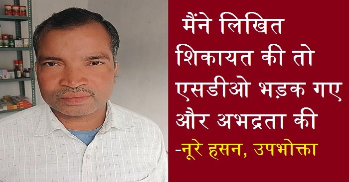 हल्दी,बलिया. हल्दी क्षेत्र के सोनवानी ग्रामसभा निवासी एक उपभोक्ता ने दुबहर व सोनवानी विद्युत उपखंड के एसडीओ राकेश कुमार पर शिकायत सुनने की बजाय अभद्रता करने का आरोप लगाया है।