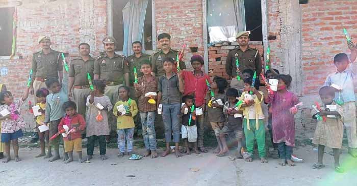 अचानक अपने बीच पुलिस को देखकर बच्चे पहले तो संकोच में पड़ गए, लेकिन जब इंस्पेक्टर शुक्ला ने स्नेहपूर्वक उनके चेहरे पर रंग लगाया और मिठाइयां बांटीं, तो माहौल खुशी और उत्साह से भर गया। बच्चों के चेहरे पर मुस्कान और आंखों में चमक साफ दिखाई दे रही थी।