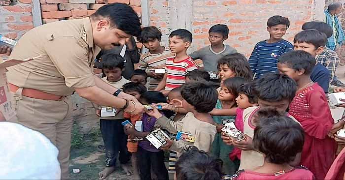पुलिस टीम ने इस दौरान बच्चों को मिठाई, मोमबत्तियाँ, दीये और पटाखे वितरित किए। जब नन्हे-मुन्नों के चेहरे पर मुस्कान खिली, तो पुलिसकर्मी भी भावुक होकर उनकी खुशियों में शामिल हो गए