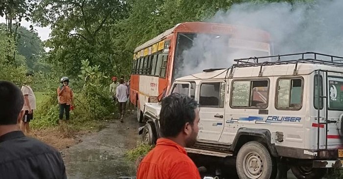 तेज रफ्तार एक बार फिर से हादसे की वजह बनी है। खेजुरी थाना क्षेत्र के खडासरा में सोमवार की शाम लगभग चार बजे के करीब एक सरकारी बस और फ़ोर्स वैन की जोरदार
