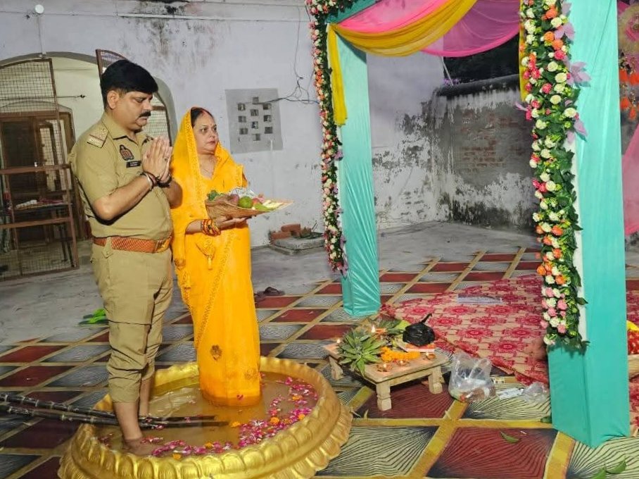 उभांव थाने में पहली बार छठ पूजा, इंस्पेक्टर संजय शुक्ल ने रचा इतिहास