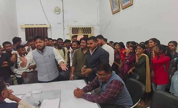 सतीश चंद्र महाविद्यालय में सैकड़ो छात्र-छात्राओं ने अपने छात्रवृत्ति फार्म को अग्रसारित करने के लिए एवं उत्तर प्रदेश सरकार द्वारा छात्रों को दी जाने वाली फ्री मोबाइल योजना की लिस्ट सार्वजनिक करने की मांग को लेकर छात्र नेता नंदन सिंह के नेतृत्व में प्राचार्य का घेराव किया.