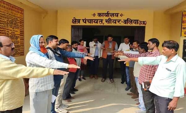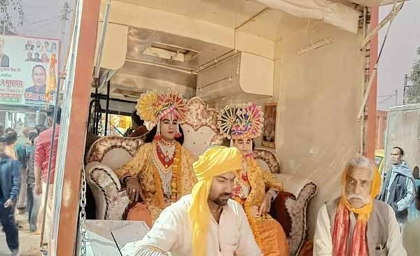 श्री सीता-राम विवाह महोत्सव बारात यात्रा के बलिया में पहुंचने पर राष्ट्रीय स्वयंसेवक संघ बलिया नगर के सह नगर संघचालक परमेश्वरनश्री के नेतृत्व में संघ परिवार द्वारा फेफना चौराहा पर भव्य स्वागत व आरती की गयी