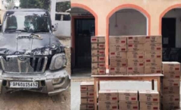 स्कॉर्पियो गाड़ी से अवैध अंग्रेजी शराब तस्करी करने का मामला सामने आया है. थाना बैरिया पुलिस ने स्कार्पियों वाहन के साथ अलग-अलग ब्राण्ड की 40 पेटी में कुल 345.60 लीटर अवैध शराब बरामद किया है
