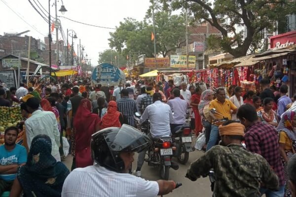सुबह से ही आसपास के गांवों से लोग फल, फूल, कपड़ा, प्रसाद और पूजा सामग्री की खरीदारी के लिए बाजार पहुंचे