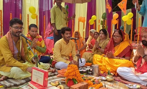 रसड़ा क्षेत्र के सुल्तानीपुर गांव में आयोजित होने वाले श्री नवकुंडीय सहस्त्र चण्डी महायज्ञ के लिए मंगलवार को वैदिक मंत्रों के बीच भूमि पूजन एवं ध्वजापूजन किया गया।