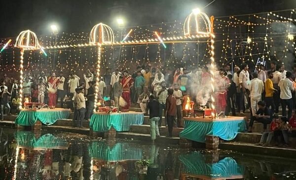 दशहरे के पावन पर्व पर B.A.C. परिवार दुर्गा पूजन समिति बड़ी बाजार, भूतेस्वरनाथ मंदिर पोखरा बांसडीह के तत्वावधान में इस बार पहली बार भव्य गंगा आरती का आयोजन किया गया है