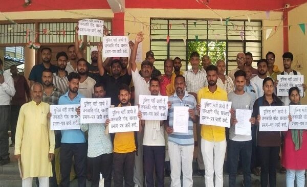 पुलिस उपनिरीक्षक भर्ती आयी है गोंड, खरवार जनजाति प्रमाण-पत्र तत्काल जारी करो’ नारे के साथ ऑल गोंडवाना स्टूडेंट्स एसोसिएशन(आगसा) के नेतृत्व में सदर मॉडल तहसील पर जनजाति गोंड, खरवार समुदाय के लोगों द्वारा जोरदार प्रदर्शन किया.