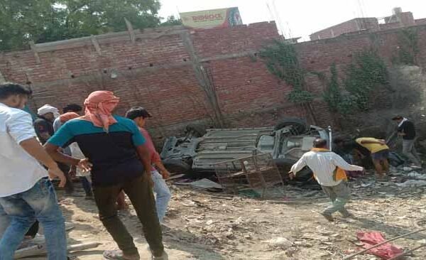गड़वार-बलिया मार्ग पर उमरगंज स्थित शराब दुकान के सामने शनिवार की भोर में तेज रफ्तार क्रेटा कार असंतुलित होकर एक दुकान को टक्कर मारते हुए गड्ढे में जाकर पलट गई