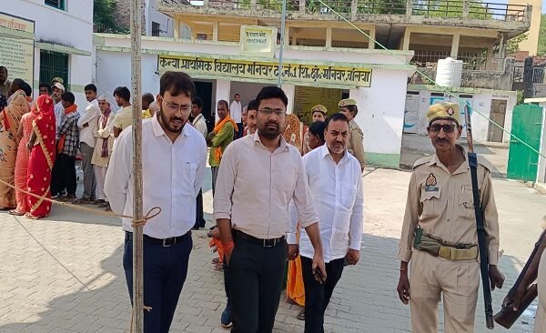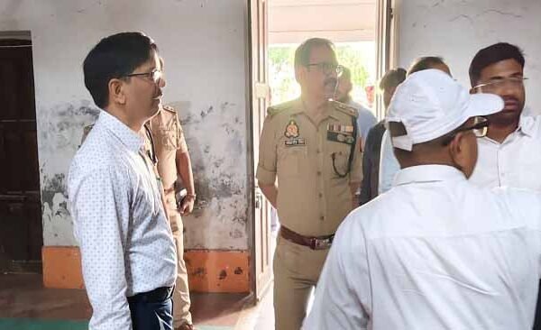 जिलाधिकारी प्रवीण कुमार लक्षकार और पुलिस अधीक्षक ओमवीर सिंह ने नगर पंचायत,मनियर के रिक्त अध्यक्ष पद के लिए मतदान को सम्पन्न कराने के लिए पोलिंग पार्टी रवानगी स्थल बांसडीह इंटर कॉलेज का दौरा किया