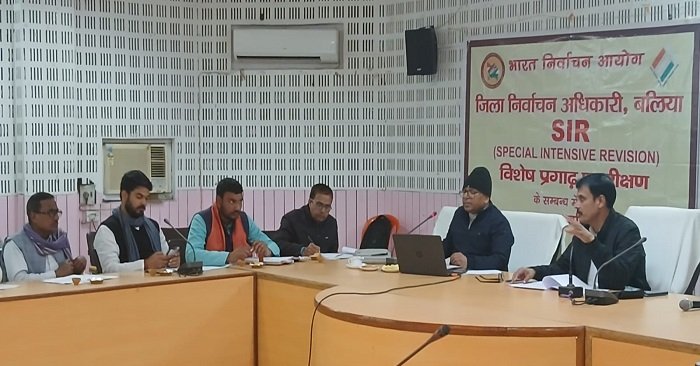 बलिया. एसआईआर (विशेष प्रगाढ़ पुनरीक्षण–2026) के अंतर्गत दावे और आपत्तियां प्राप्त किए जाने के संबंध में सोमवार को जिलाधिकारी/जिला निर्वाचन अधिकारी मंगला प्रसाद सिंह की अध्यक्षता में कलेक्ट्रेट सभागार में समस्त मान्यता प्राप्त राजनीतिक दलों के प्रतिनिधियों के साथ बैठक आयोजित की गई।